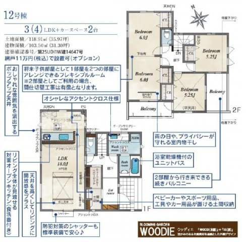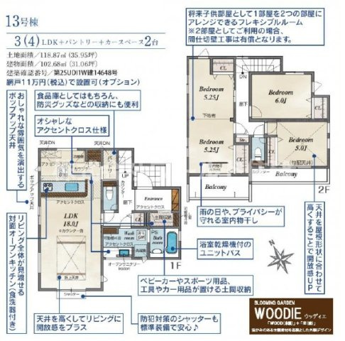 - 35.9坪~35.98坪(118.69㎡~118.95㎡)