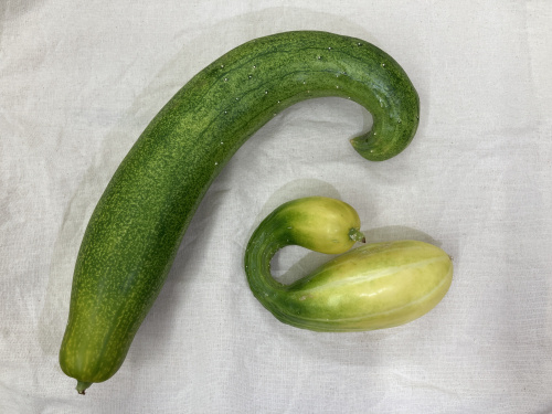 なんときゅうりの形が、連日の酷暑でくるんくるんに